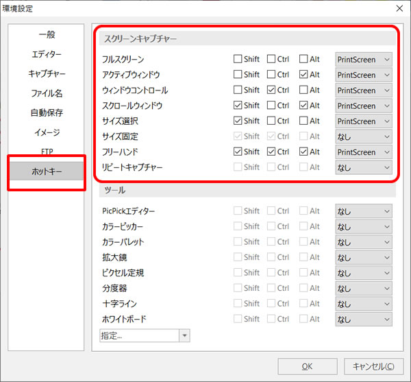 PicPickにはスクリーンキャプチャー以外にも便利なツールが揃っていて、それらもホットキーで呼び出すことができます。